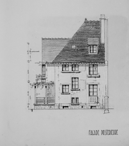 Projet de villa n°8, élévation façade postérieure.Immatriculation