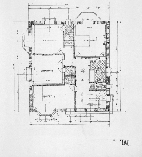 Projet de villa (non numéroté), plan du 1er étage.Immatriculation