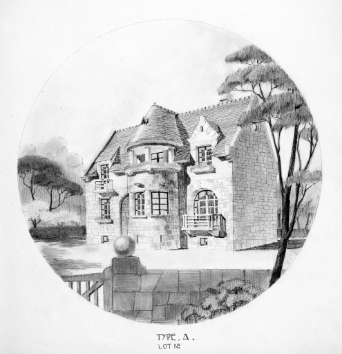 Projet de villa, type A, élévation.Immatriculation