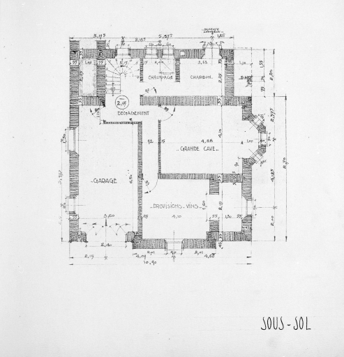 Projet de villa n°2/150,plan du sous-sol.Immatriculation