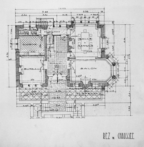 Projet de villa n°4, plan du rez-de-chaussée.Immatriculation