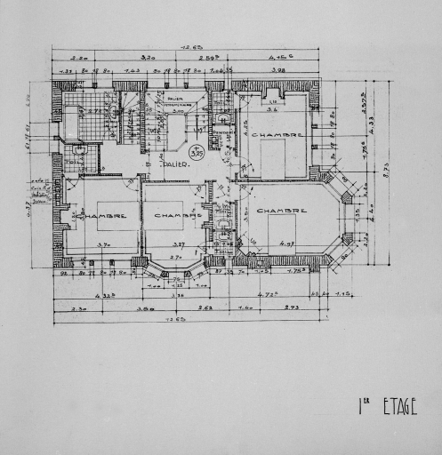 Projet de villa n°4, plan du 1er étage.Immatriculation