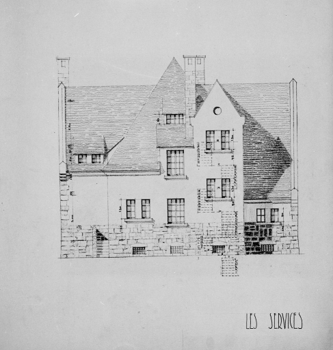Projet de villa, variation du type A, élévation vers les services.Immatriculation
