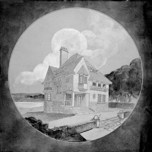 Projet de villa n°5, lot 11, perspective, élévation façade principale et de 3/4.Immatriculation