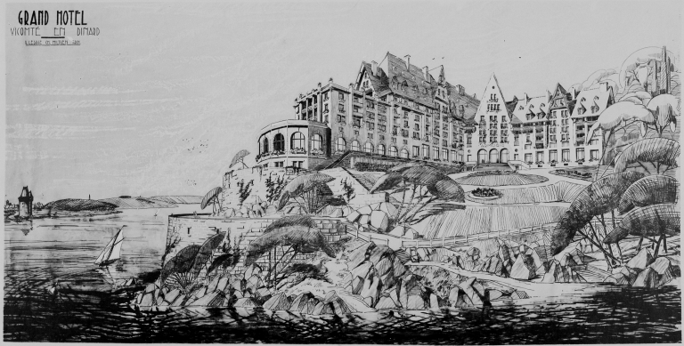 Hôtel Armoric, perspective, façade vue sur mer.Immatriculation