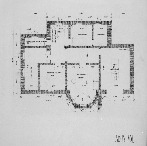 Projet de villa, variation du type A, sous-sol.Immatriculation