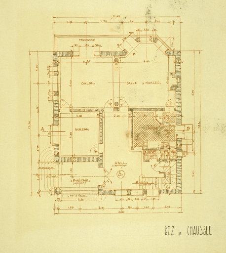 Projet de villa (non numéroté), plan du rez-de-chaussée.Immatriculation
