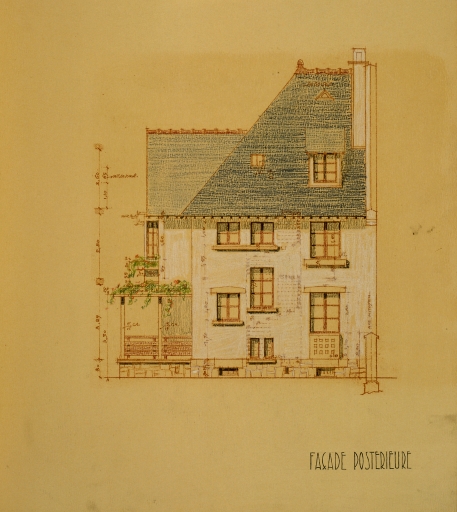 Projet de villa n°8, élévation façade postérieure.Immatriculation