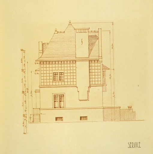 Projet de villa n°4, service, élévation de façade.Immatriculation