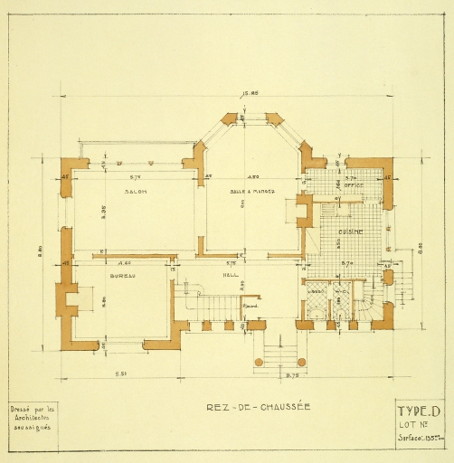 Projet de villa, variation du type D, plan du rez-de-chaussée.Immatriculation