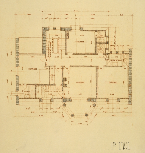 Projet de villa, variation du type A, 1er étage.Immatriculation
