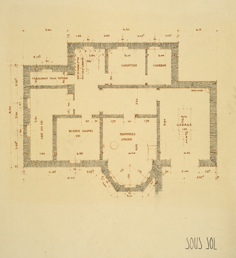 Projet de villa, variation du type A, sous-sol.Immatriculation