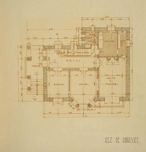 Projet de villa n°3, plan du rez-de-chaussée.Immatriculation
