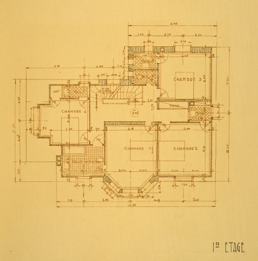 Projet de villa n°3, plan du 1er étage.Immatriculation