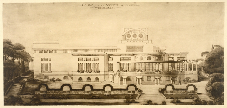 Casino de la Vicomté, projet, façade sur la mer.Immatriculation