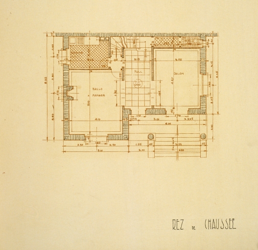 Projet de villa n°9 et 10, plan du rez-de-chaussée.Immatriculation