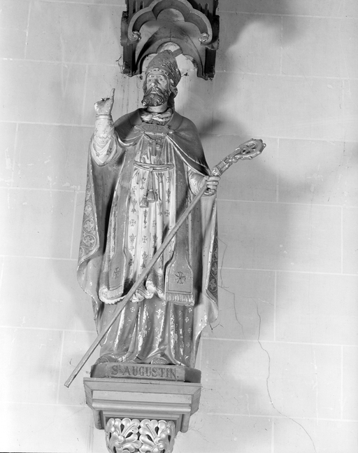 Statue, socle, dais (grandeur nature) : saint Augustin,