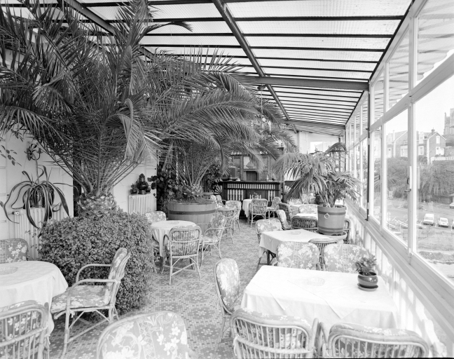 Vue générale du salon sous la véranda vers l'accueil.Immatriculation
