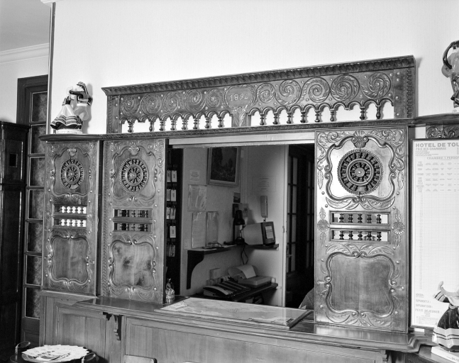Vue générale du guichet de l'entrée avec le lit clos daté de 1844.Immatriculation