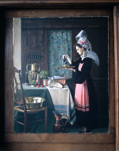 Vue générale du tableau de Bertrain daté de 1954 dans le lit clos n°2, terrasse.Immatriculation