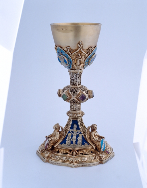 Chapelle : calice, patène, 2 burettes, plateau à burettes, clochette,