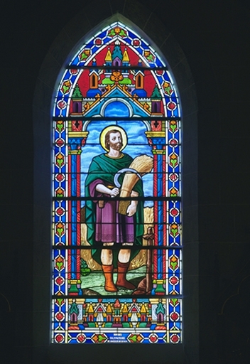 Verrière de la baie 9 (verrière à personnages) : saint Isidore,