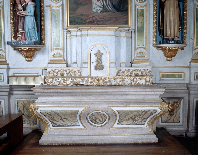 Autel de saint Clément - Autel, vue de détail.Immatriculation