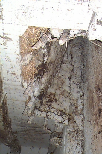 Détail de la cheminée : vue en contre-plongée dans le conduit