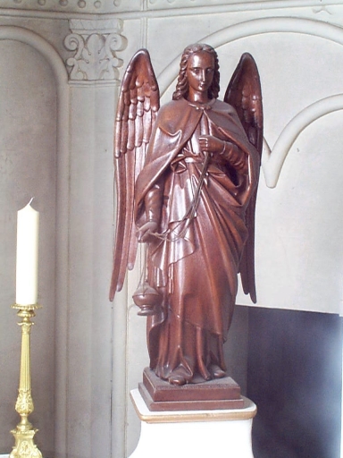 Ensemble du maître-autel (autel, tabernacle, 2 gradins, baldaquin, 3 degrés, 2 statues),