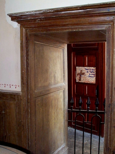 Ensemble de mobilier : fonts baptismaux, lambris de demi-revêtement, clôture des fonts baptismaux,