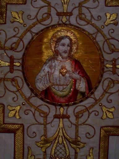 Ornement blanc 3 : chasuble, bourse de corporal, manipule, voile de calice,
