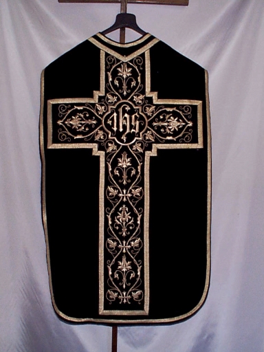 Ornement noir 4 : chasuble, bourse de corporal, étole, manipule, voile de calice,