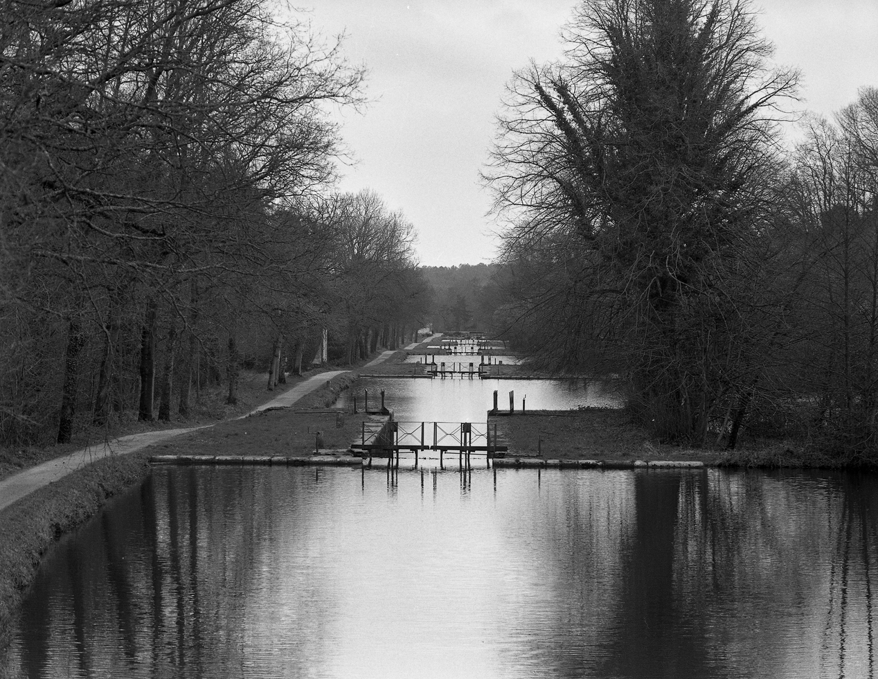 Vue des écluses depuis celle de La Ville Perrot vers l'avalImmatriculation