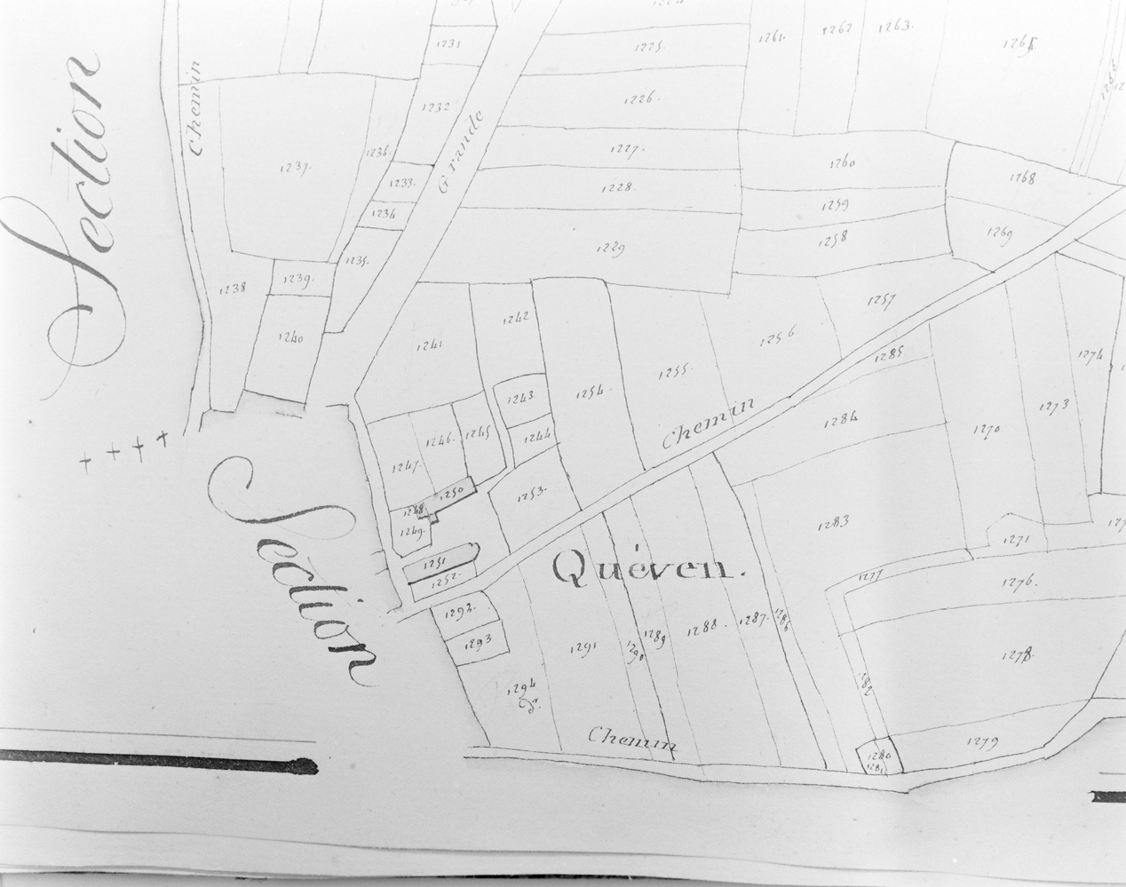Plan de Quéven sur le cadastre ancien 1818, section E2.Immatriculation