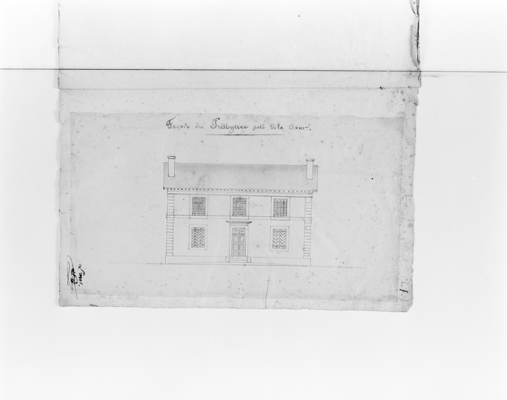 Premier projet signé Lussault, architecte : élévation antérieure.Immatriculation