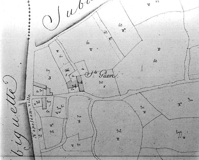 Plan cadastral 1807-1809. Section B2 : route de Napoléonville à la hauteur de Saint-Guen. AM Vannes 21Fi.Immatriculation
