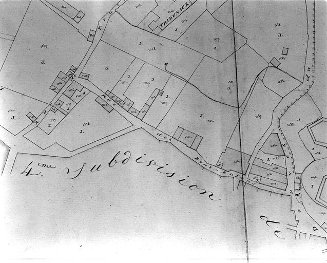 Plan cadastral 1809. Section I3, partie sud : rue des Bons enfants. AM Vannes 21Fi.Immatriculation