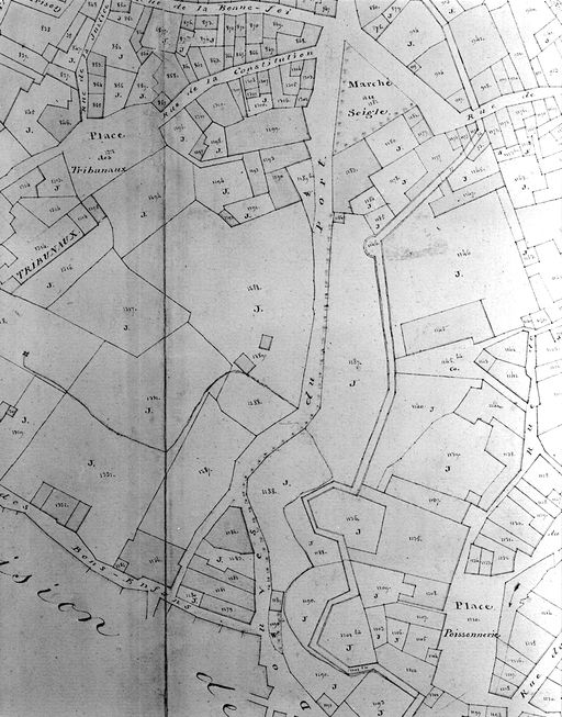 Plan cadastral 1809. Section I3, centre : intra-muros, partie sud-ouest (parcelles1205). AM Vannes 21Fi.Immatriculation