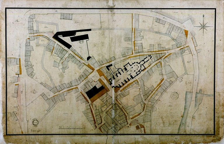 Plan d'alignement et de voirie, 1840, section A : haut de la rue Thiers. AM Vannes.Immatriculation