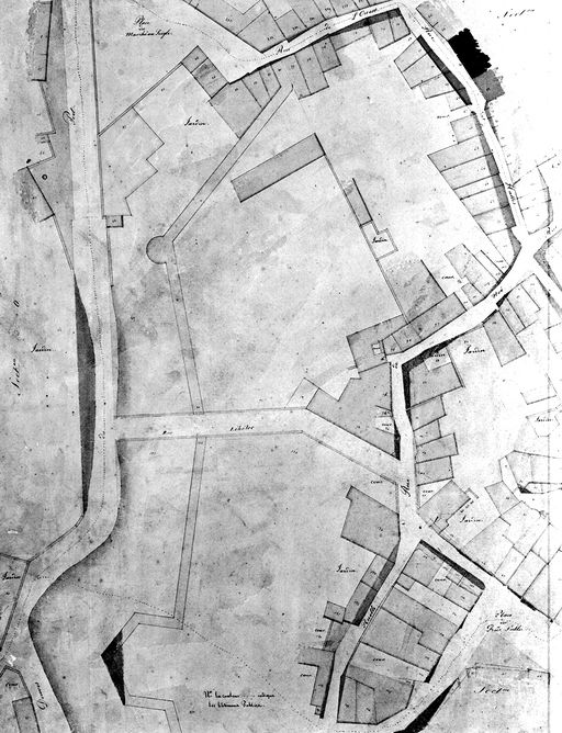 Plan d'alignement et de voirie, 1840, section B, partie ouest : rue des Douves et du Port. AM Vannes.Immatriculation
