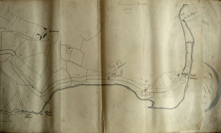 Tracé de la rigole entre le pont de Bara et le pont de Belaître, 22 janvier 1844 (D. D. E. Morbihan, Pontivy)Immatriculation