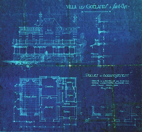 Villa Les Goélands, projet d'agrandissement, dessin, par Eugène Olichon, 1923 (A. P.).Immatriculation