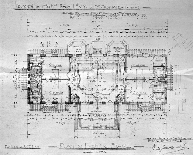 Plan du premier étage, par B. de Jankowski, 1928 (A. P.).Immatriculation