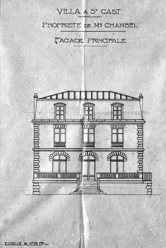Villa à Saint-Cast, propriété de Mr Chambel, façade principale, dessin, [1923] (A. P.)Immatriculation