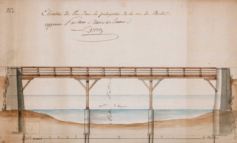 Élévation, coupe et profil du pont dans la prolongation de la rue de Berlin (A. C. Rennes, 2 Fi 6)Immatriculation