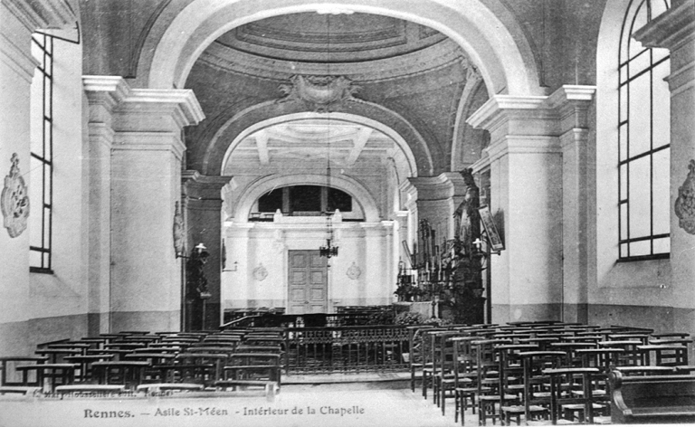 Asile Saint-Méen. Intérieur de la chapelle, carte postale, début 20e siècle, (A. C. H. R.)Immatriculation