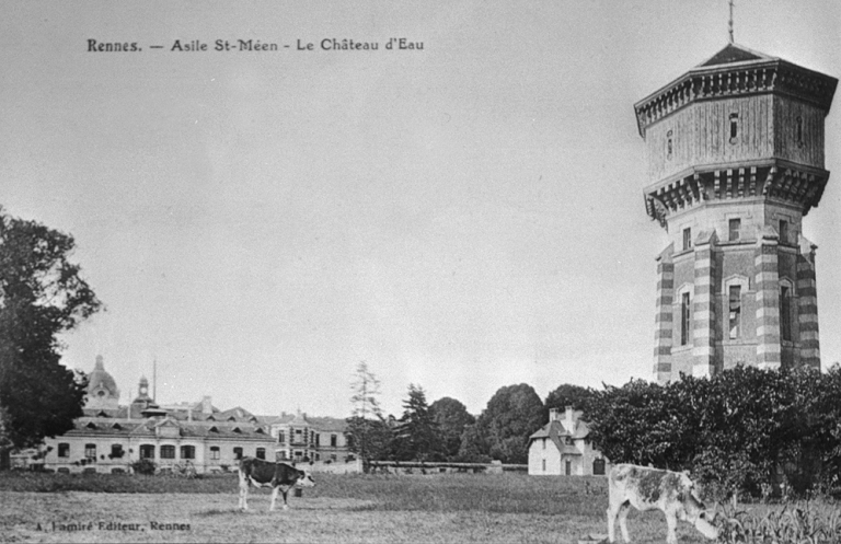 Asile Saint-Méen. Le château d'eau, carte postale, Famiré éditeur, début 20e siècle, (A. C. H. R.)Immatriculation