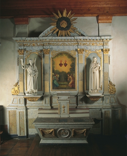 Ensemble de l'autel des Coeurs Sacrés de Jésus et Marie (autel, retable, tabernacle, 2 gradins, degré),