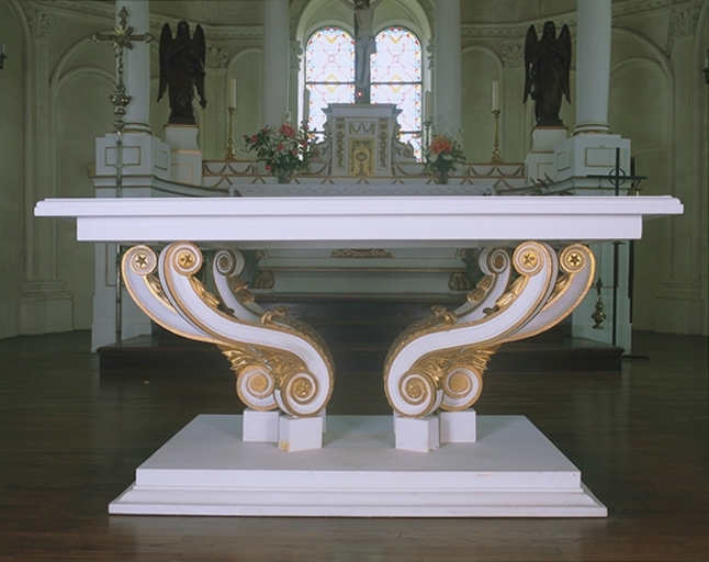 Volutes de l'abat-voix de la chaire : vue généraleImmatriculation