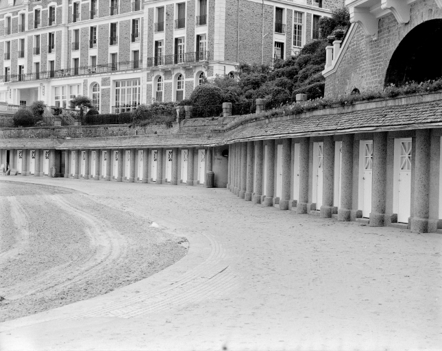 Plage de l'Ecluse, ensemble des cabines de bains, vue de profil, partie ouestImmatriculation